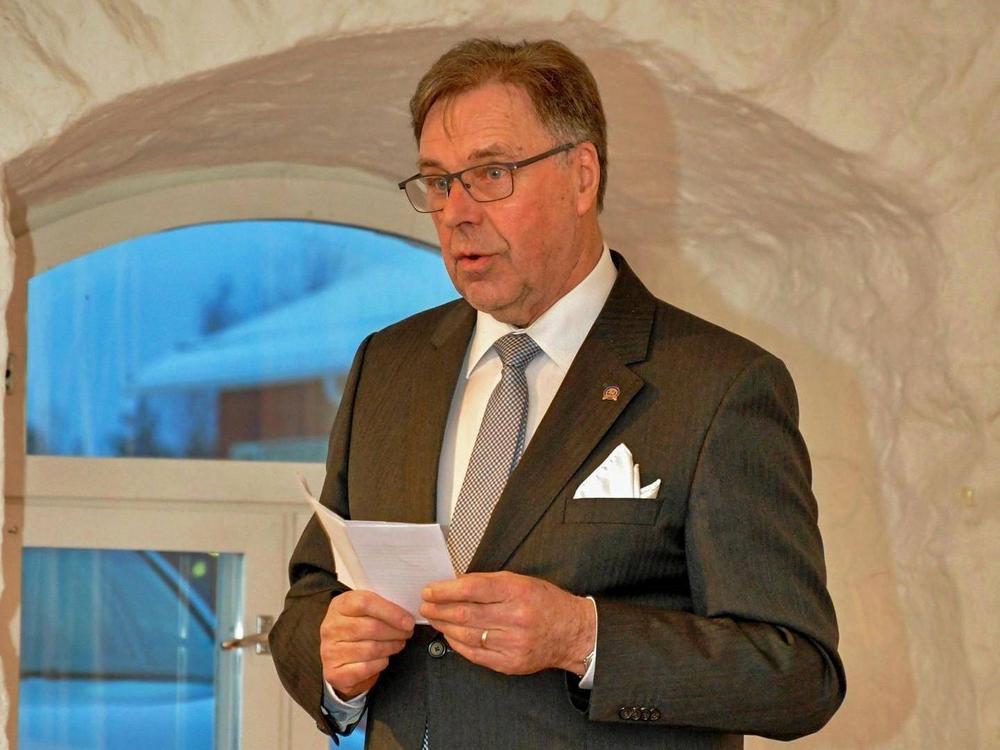 Senioriliiton varapuheenjohtaja Paavo Peltosaari toi juhlaan liiton tervehdyksen.