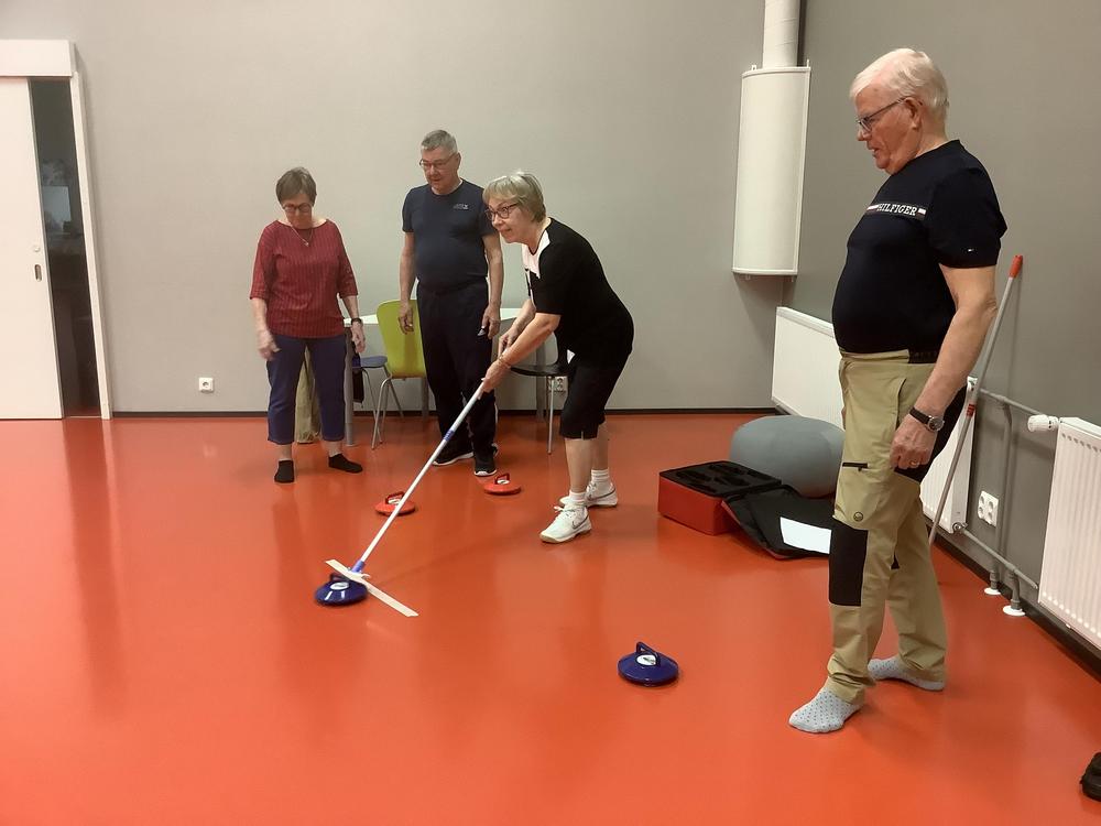 Liikuntaviikon toisena päivänä tutustuttiin salicurlingiin, jonka Juvan kunnan vanhus- ja vammaisneuvosto oli hankkinut ikäihmisten käyttöön.