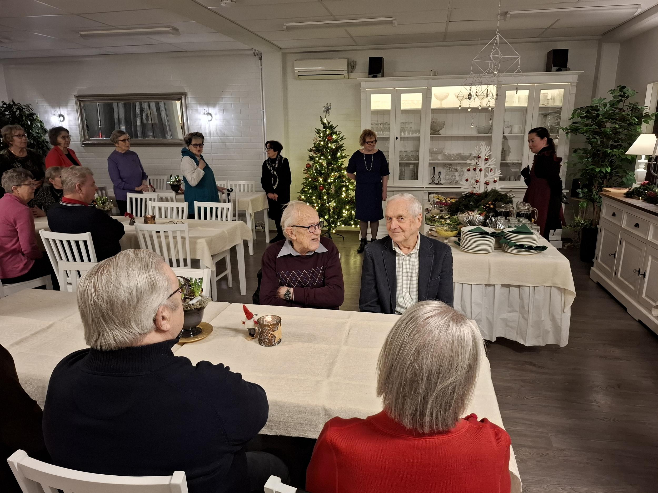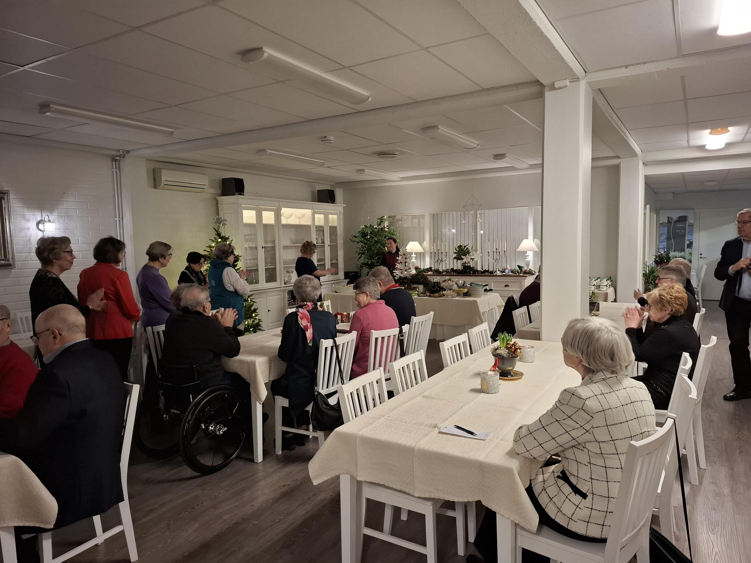 Puheenjohtaja Eija toivotti meidät kaikki 25 senioria tervetulleiksi viettämään jouluista yhdessäoloa hyvän ruoan ja mukavien juttujen parissa. Keskustelut olivatkin jo virinneet eri pöytäkunnissa ja kuulumisia vaihdeltiin ahkerasti.