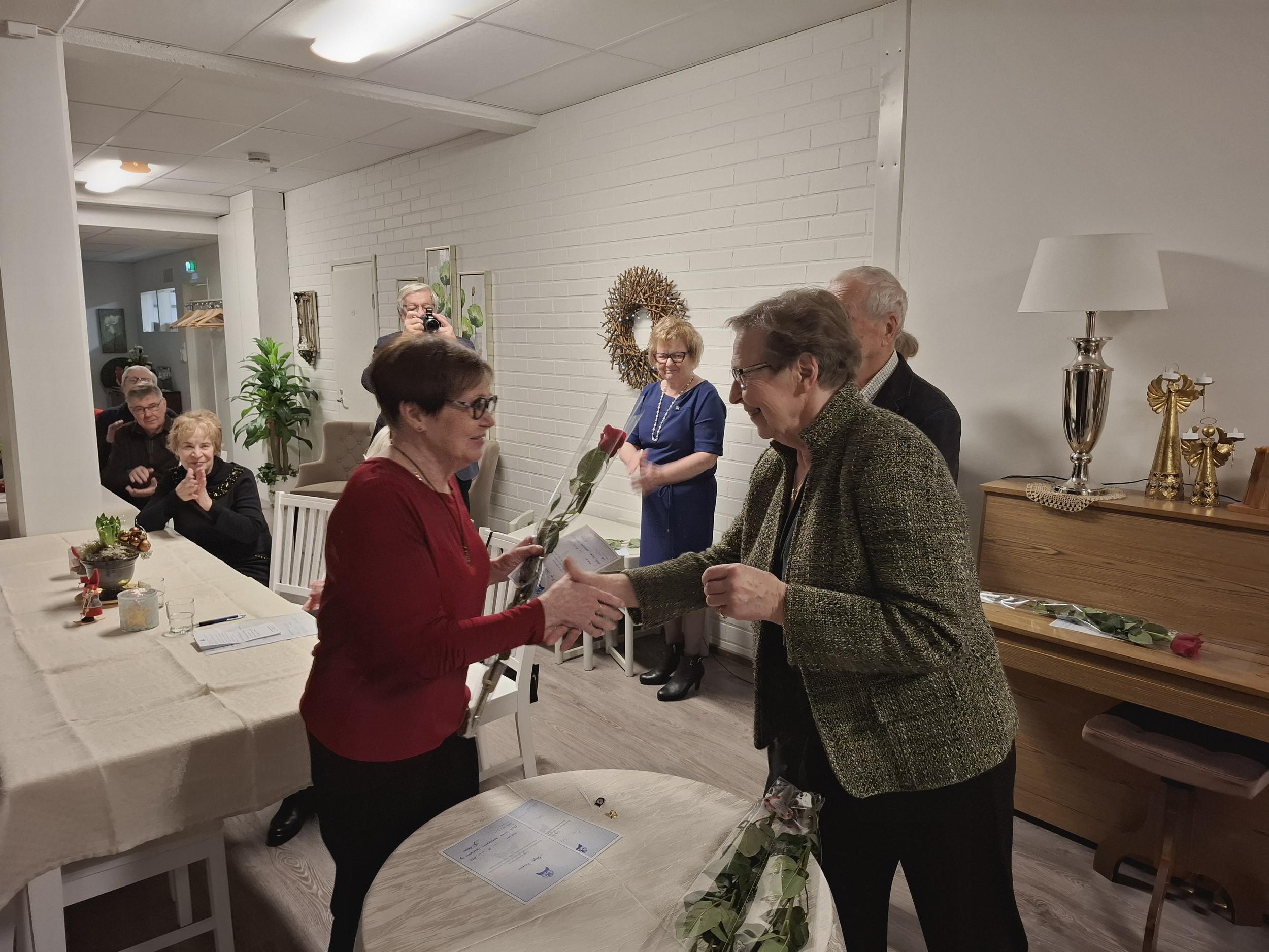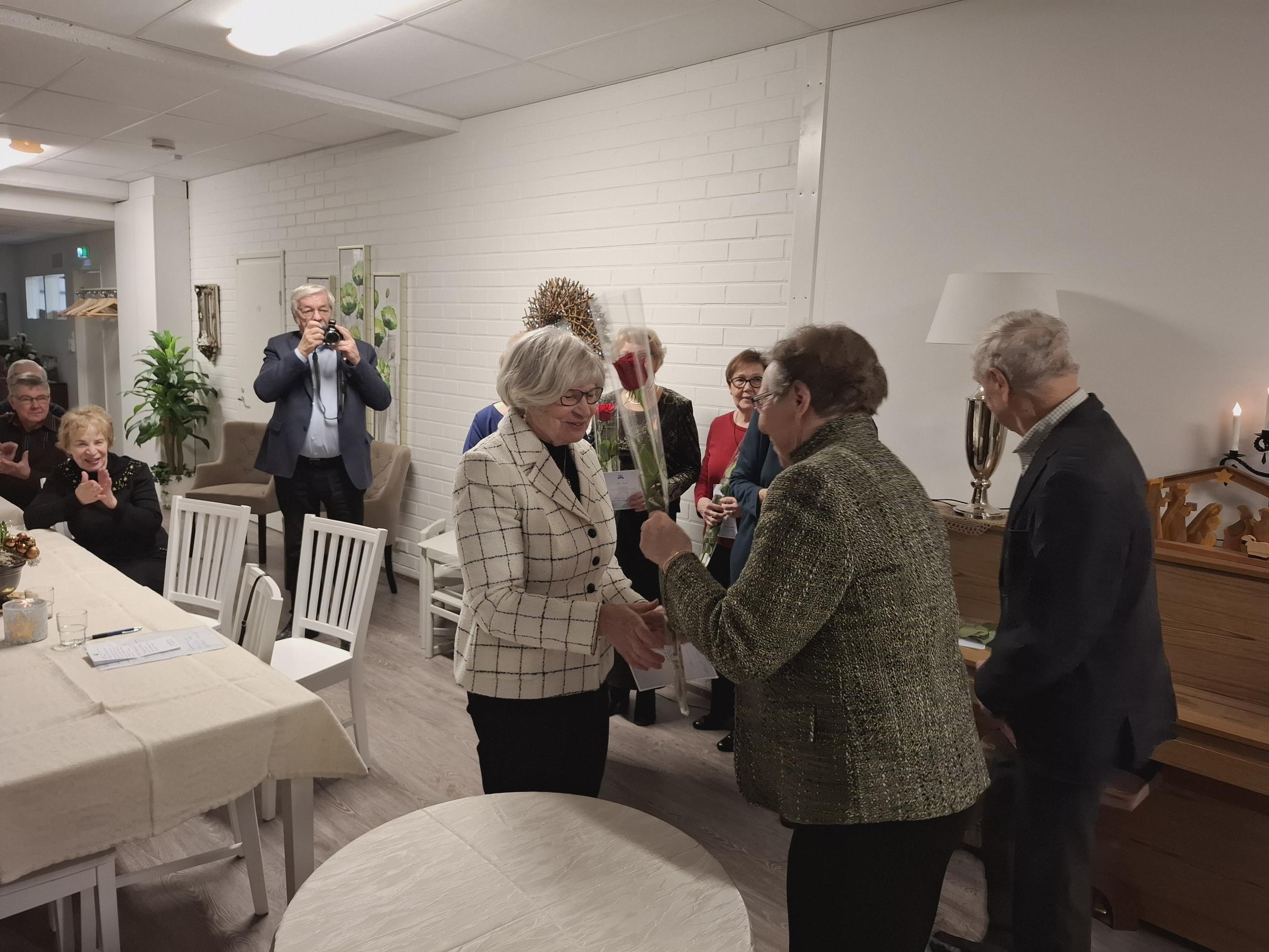 Maittava ruoka nautittiin mukavan pöytäseurustelun lomassa. Kuukausitapaaminen huipentui kahvitarjoilua edeltävään senioriliiton ansiomerkkien luovuttamiseen yhdistyksen toimijoille.