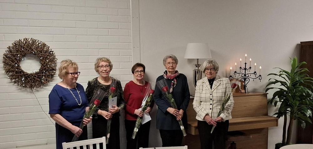 Kansallinen senioriliito ry:n hopeiset ansiomerkit tunnustuksena ansioista liiton toiminnassa myönnettiin 10.12.2025 päivämäärällä Eija Luukkoselle, Airi Nevalalle, Pirjo Rallille ja Raija Vuokolle sekä pronssinen ansiomerkki Inga Loposelle.