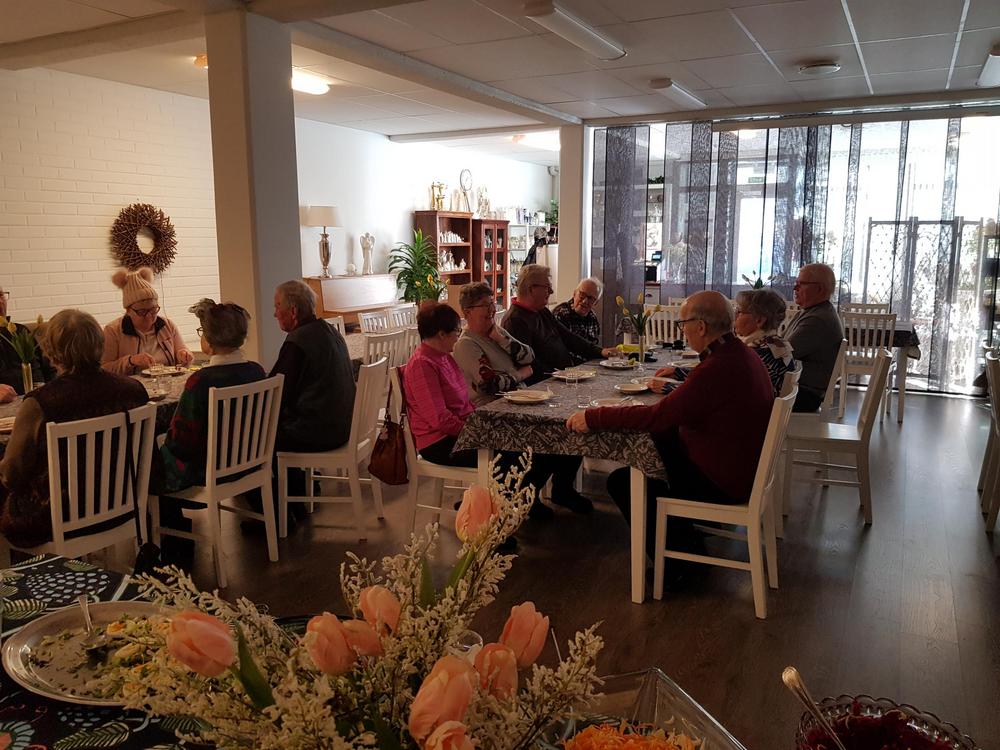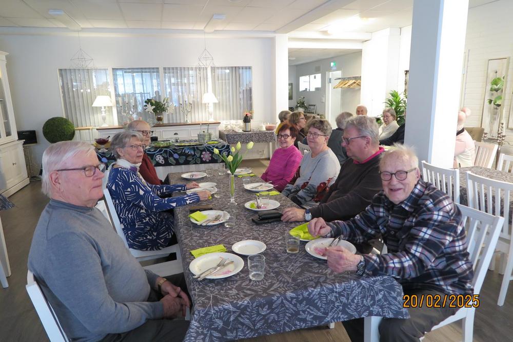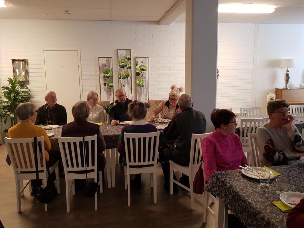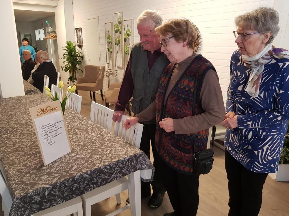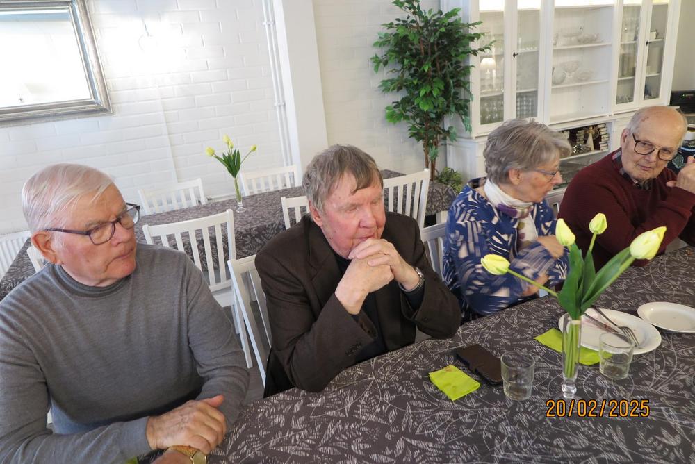 Pitopalvelu Summasen lounaspöytiin oli kokoontunut viisitoista senioria ruokailemaan ja vaihtamaan kuulumisia. Risto kertoili jälkiruokakahvia juotaessa ajankohtaisista tapahtumista kuten tulevan sunnuntain senioreiden kirkkopyhästä ja Kouvolaan tehtävästä teatterimatkasta yhdessä rotareiden kanssa.