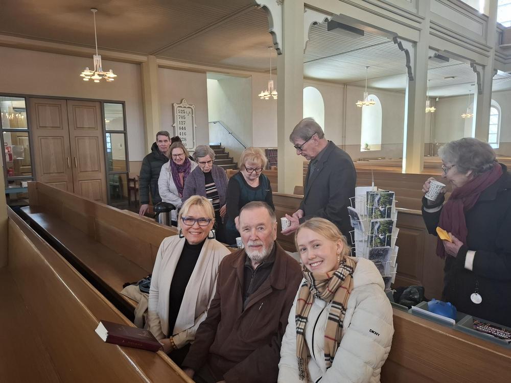 Paikalla oli toistakymmentä senioria. Heistä Airi Nevala ja Esko Loikkanen toimivat tekstin lukijoina. Messujumalanpalvelukseen osallistui tavallista runsaammin seurakuntalaisia.