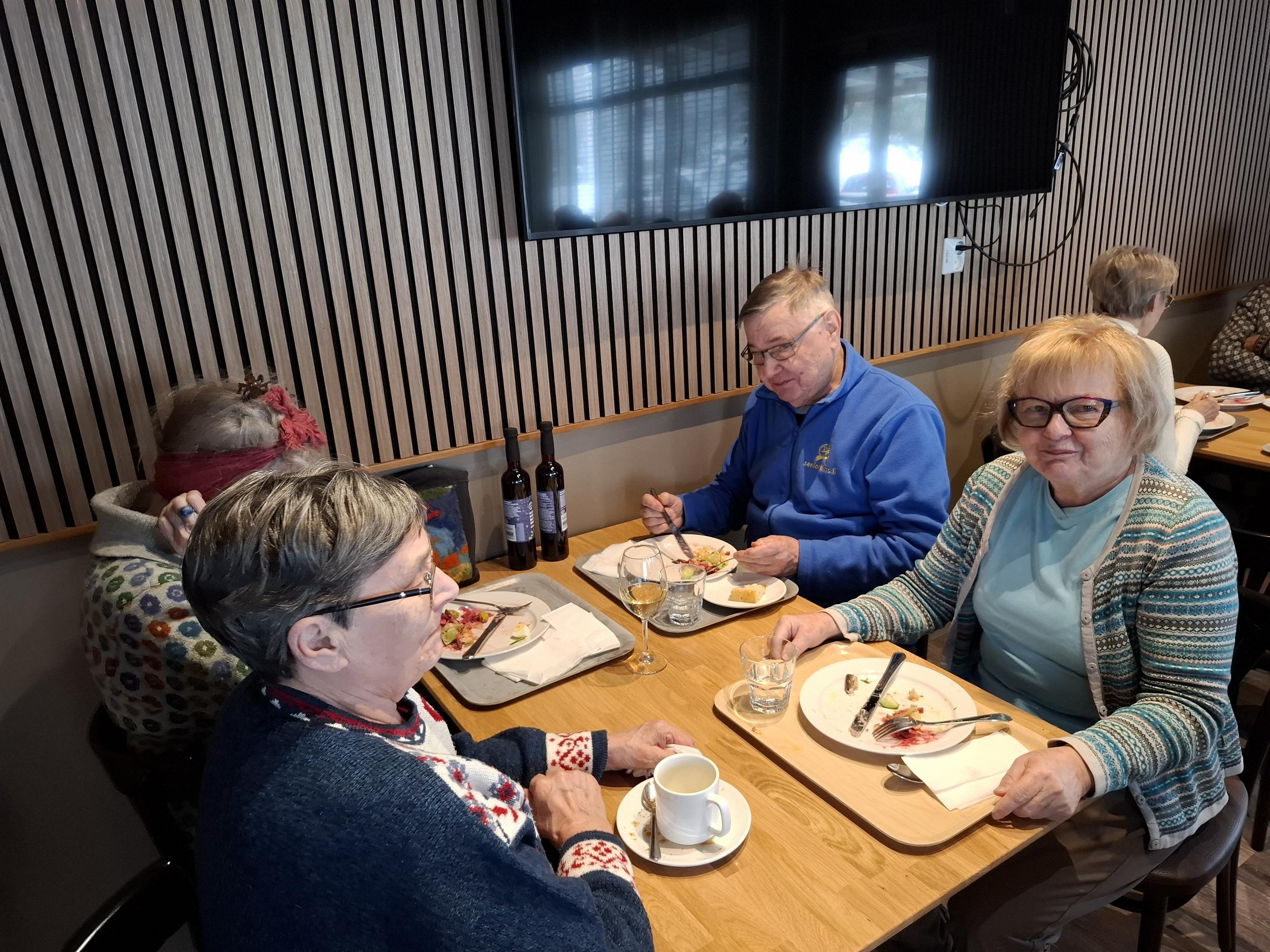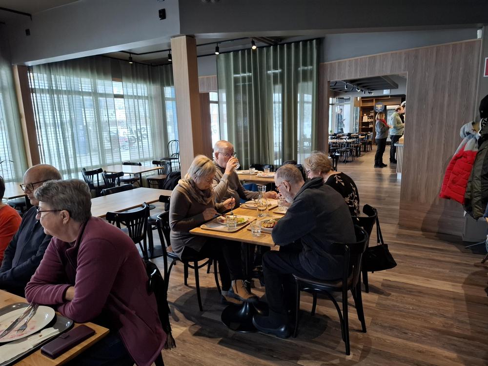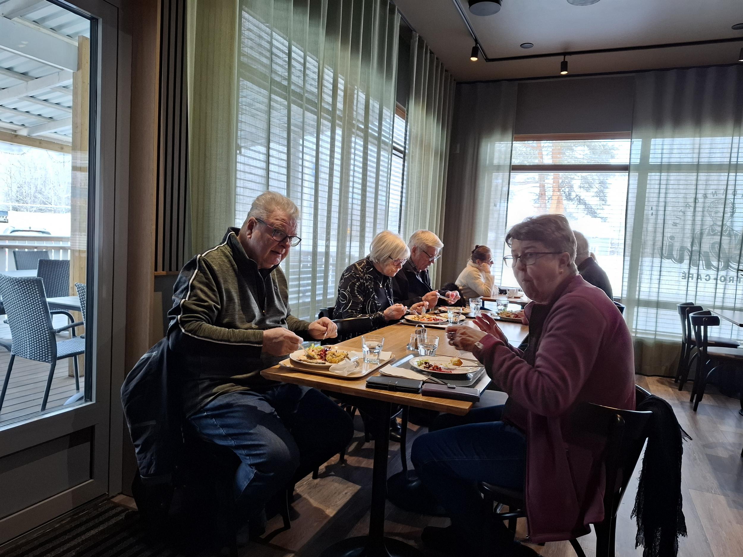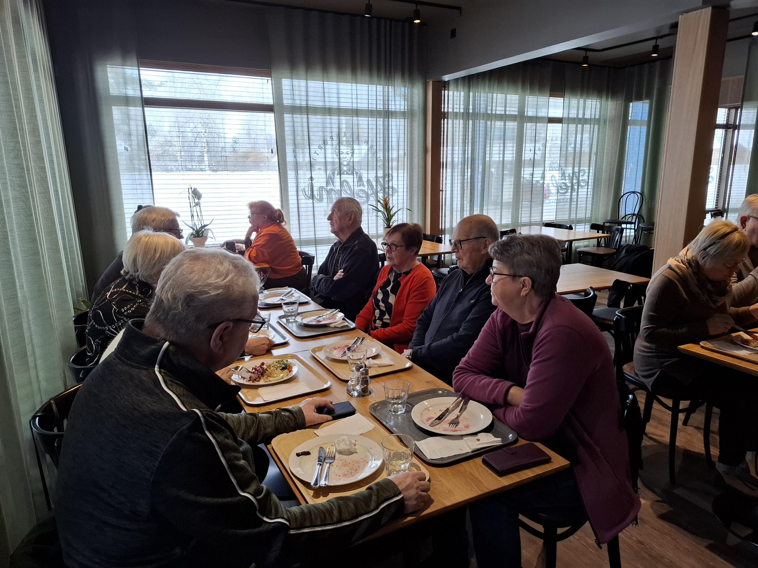 Kokoonnuimme Ravintola Helmeen kevätkauden ensimmäiseen yhteiseen lounastilaisuuteen. Pöytäseurueissa käytiin vilkasta keskustelua ajankohtaisista asioista - muisteltiinpa myös menneitäkin.